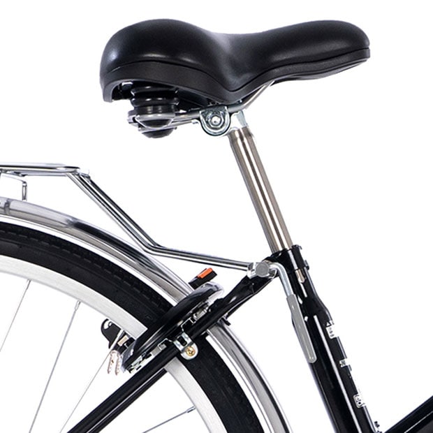 あさひオリジナルのクッション性の高いサドル。太ももが干渉しにくいオリジナル形状です。