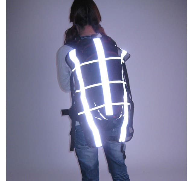 ベストでは、バックパックを背負ったら、反射素材が活かされません。