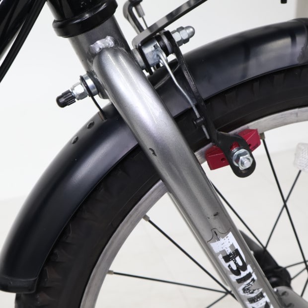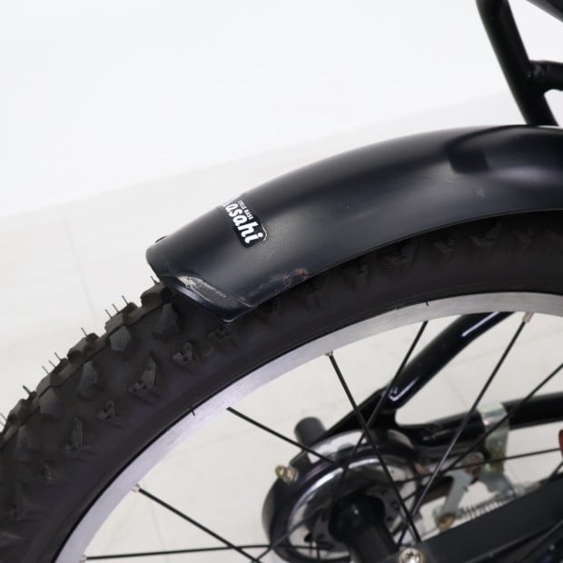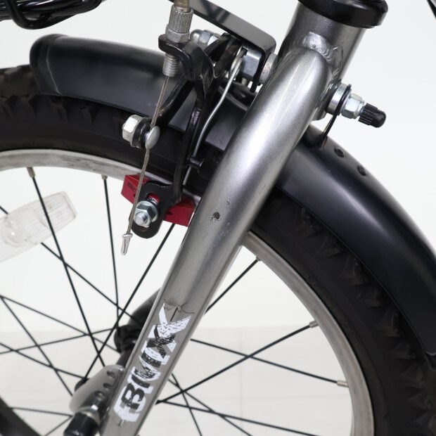 一部に傷がありますが、比較的状態の良い車体です。補助輪がスタンドに交換されています。