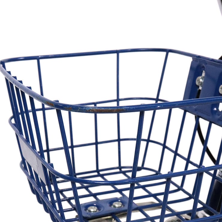 傷あり。補助輪がスタンドに交換されています。前カゴが後付けされています。