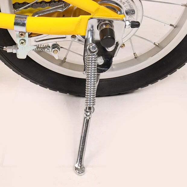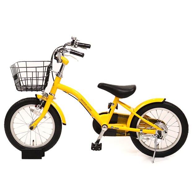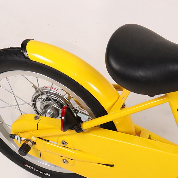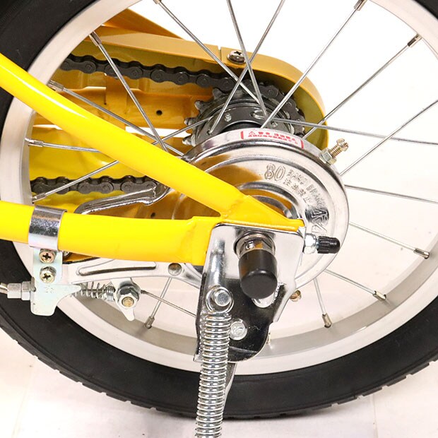 使用感の少ない車体です。補助輪がスタンドに交換されています。前カゴ、前後泥除けが後付けされています。