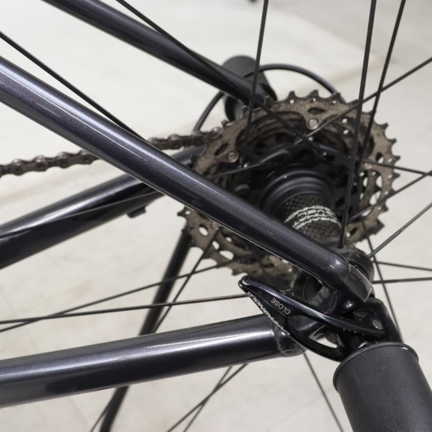一部に傷や錆がありますが、比較的状態の良い車体です。コンポーネント及びホイールが交換されています。サブブレーキレバーが外されています。