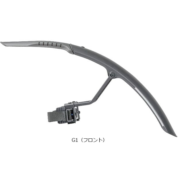 G1(フロント)はフロントフォークに面ファスナーで簡単装着でき、調整可能で泥や等を効果的に防ぐことが可能です。