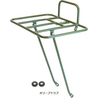 アルミ合金製パイプを採用した軽量なフロントキャリアー。ワイドな天板により様々な荷物を積載できます。 (Front Quick Release フロント クイックレリーズ 123mmを使用すれば、ダボの無い自転車に装着可能です。)
