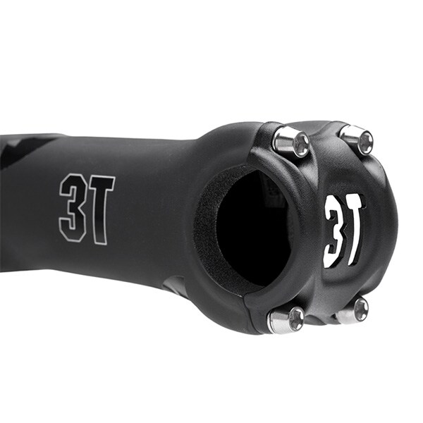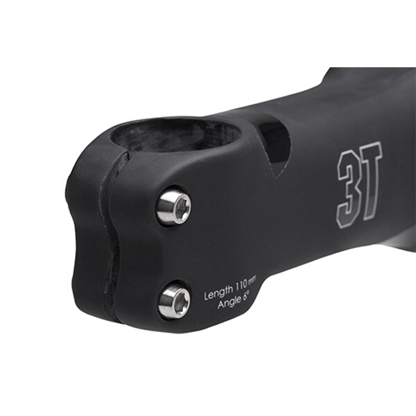 固定力には非常に厳しい独自の基準を設けテストを重ねており、信頼性も抜群。3T のバー&フォークとベストフィットするのは当然だが、他メーカーのハンドルもしっかりテストされマッチングを確認されています。ハイモジュラスカーボン製のブラックロゴのLTD ステルス仕様。