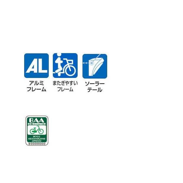 一般社団法人自転車協会が制定した安全・環境基準適合車です。 ブリヂストンの自転車および電動アシスト自転車はBAA(自転車協会制定)で要求される基準より さらに厳しい独自の安全基準を制定しています。