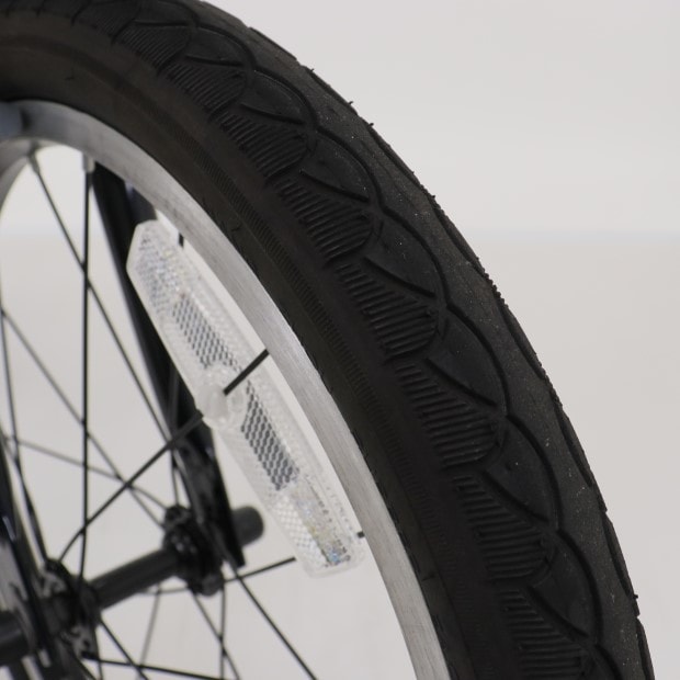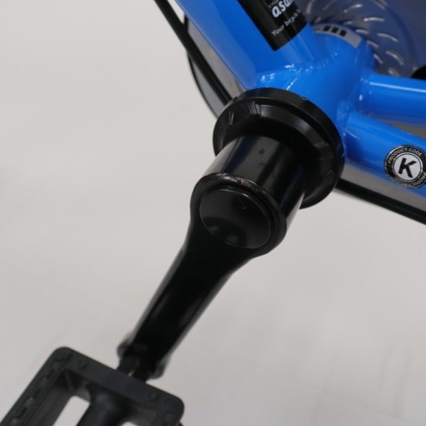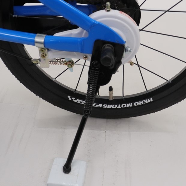 一部に傷がありますが、比較的状態の良い車体です。。補助輪がスタンドに交換されています。安全免許証が欠損しています。