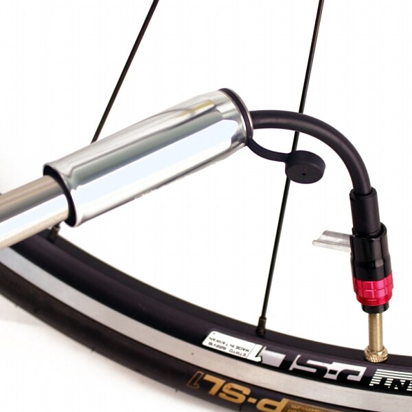 本体に収納されたホースを引き出してエアを充填するタイプの携帯ポンプ。バルブへの負担が少なく、作業に不慣れな初心者の方にもおすすめなポンプです。