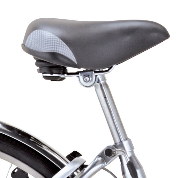 リフレクション素材を採用したサドル。広い面積で光を反射するので、夜間走行時も安心です。