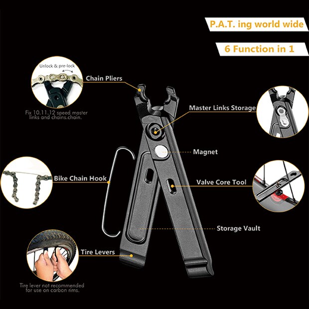 マスターリンクプライヤー、タイヤレバーを一つにした軽量便利ツール。6機能