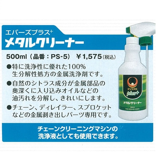 スポーツバイク用のEVERSとして新しく誕生!! エバースプラス+シリーズ。金属専用クリーナー。チェーンクリーニングマシンの洗浄液としても使用できます。