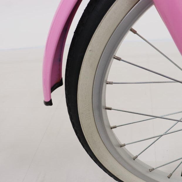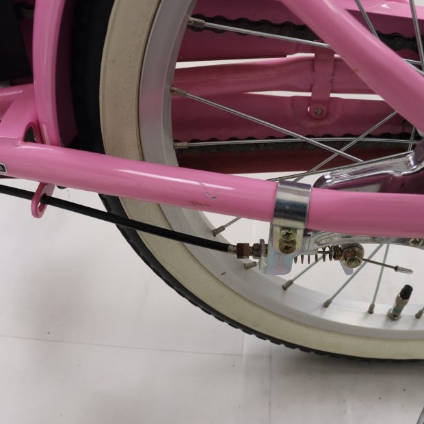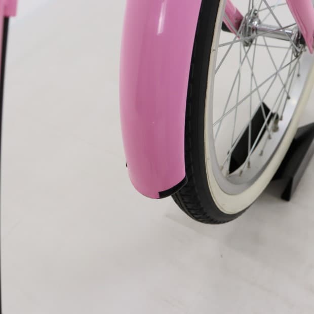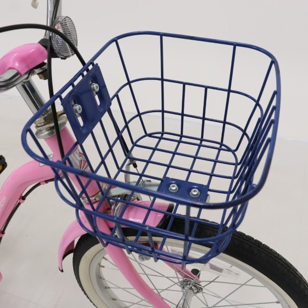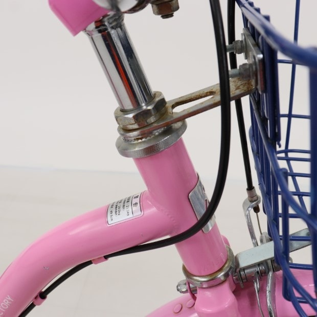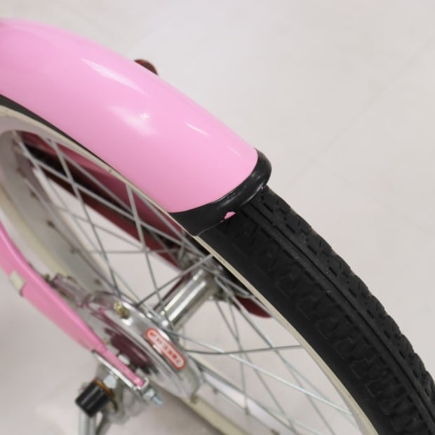傷、錆あり。補助輪がスタンドに交換されています。前カゴ、前後泥除けが後付けされています。
