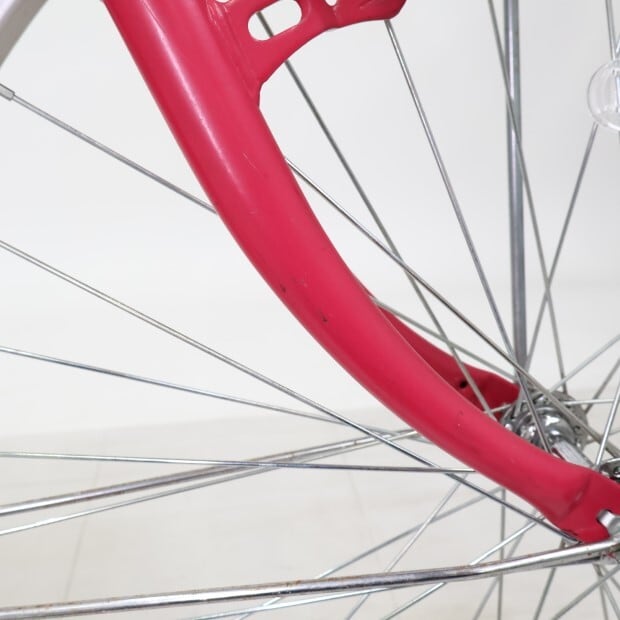 傷、錆、スレあり。前カゴ、ボタン式リング錠が後付けされています。リング錠の番号は変更不可。