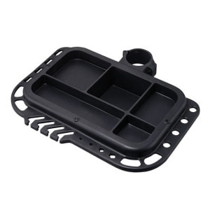 中央にパーツやケミカル品がおけるほか、周囲に各種ツールを引っかける穴八溝が多く刻まれた便利なトレイです。