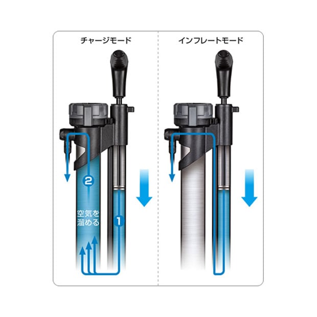 インフレートモードに切り替えれば、通常のポンプとしても使用できます。