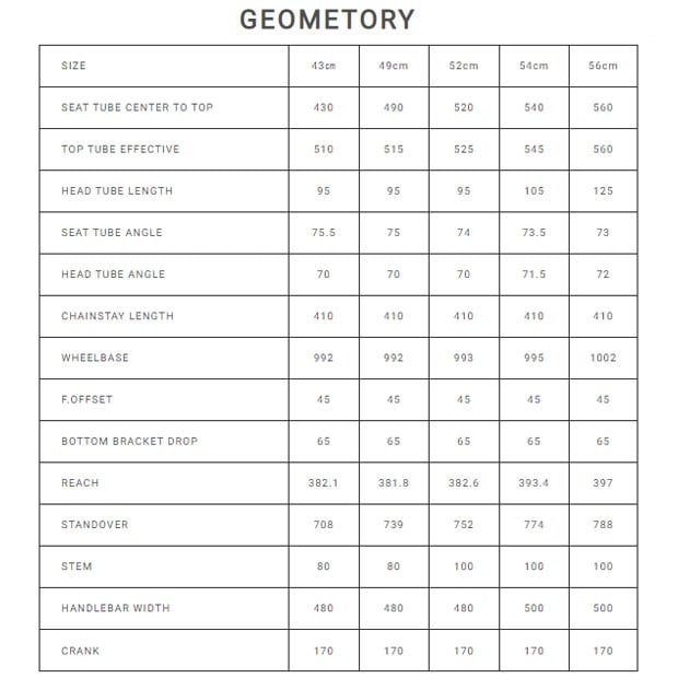 | 適応身長 | 158-165cm(43cm) 163-170cm(49cm) 168-175cm(52cm) 173-180cm(54cm) 178-185cm(56cm) |