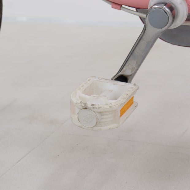 一部に傷がありますが、比較的状態の良い車体です。補助輪がスタンドに交換されています。