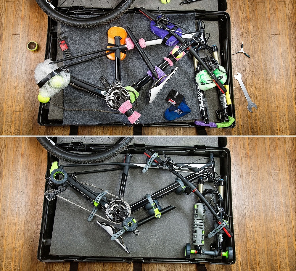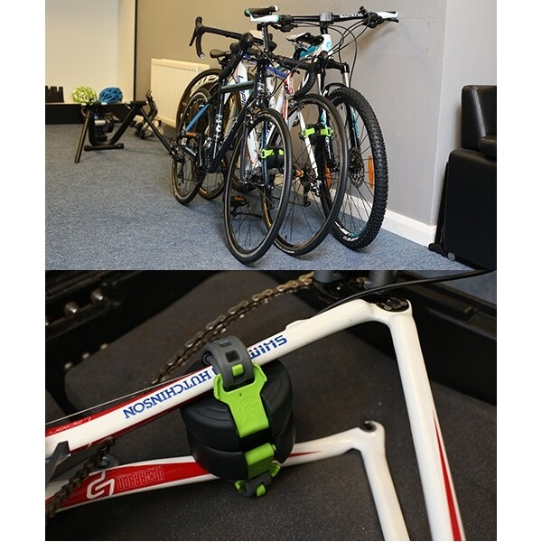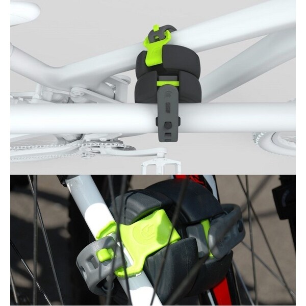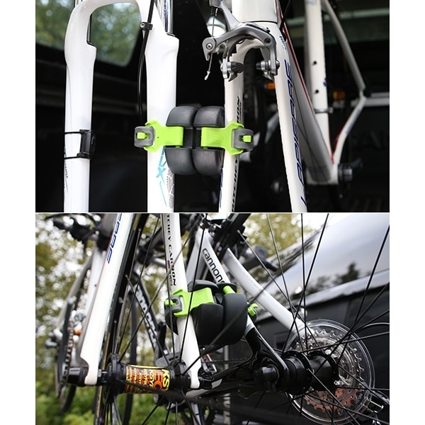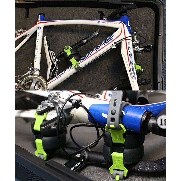 特許取得の新テクノロジーで、移動・収納時の際に自転車のフレームを保護。本体&ストラップはソフトで丈夫なラバー製。保管時や車載時など、2台の自転車をまとめて固定したり、支柱に固定したりすることが可能です。また、ハードケース収納時など、取り外したサドルやハンドルなどのパーツをフレームに固定するといった使い方もできます。