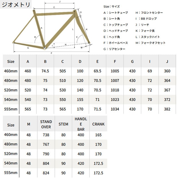 | サイズ | 460mm / 480mm / 520mm / 540mm / 555mm |