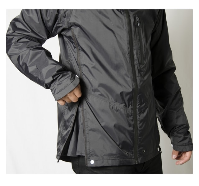 これはジッパーを閉じ、ジャケットとして着用している際に不快にならない程度の透湿度です。ポンチョは下部が大きく開くことにより解放され、蒸れにくい構造になっていますので生地そのものの透湿性はあまり必要がありません。