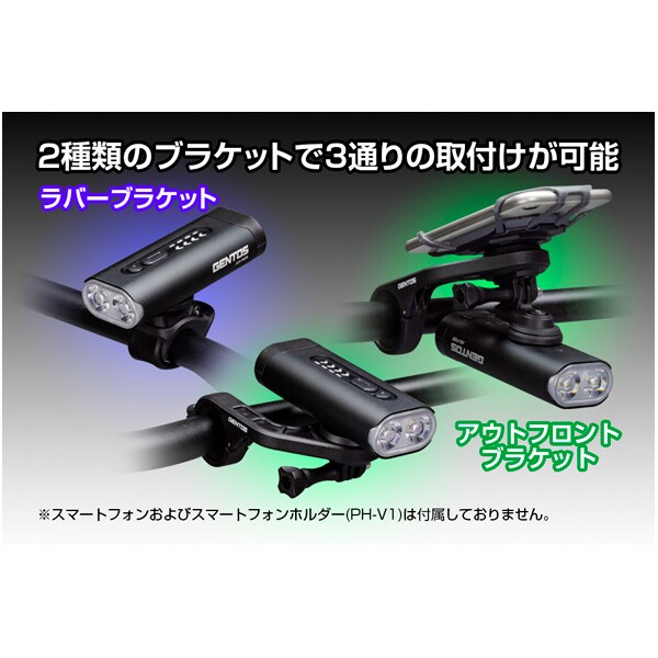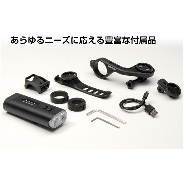 | 付属品 | アウトフロントブラケット、アウトフロントブラケット用アジャストラバー×2種、ライトアダプター、ラバーブラケット、ラバーブラケット用アジャストラバー、Micro USBケーブル(33cm)、六角レンチ×2種 |
