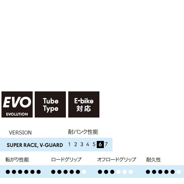 • ・効率よく動力を伝達するため、E-BIKEやスポーツバイクで走破性が求められる場面でオススメのタイヤです。