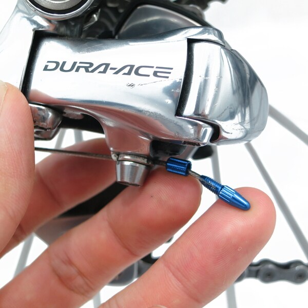 スッキリまとまって良い感じです。 まだ200キロ位しか走っていませんが、はずれることもなくしっかりついています。 装着時の注意点ですが、穴が小さくワイヤーの先が広がっていると入らないので、ラジオペンチなどで捩じりの方向に合わせながら先端部を慎重にそろえる必要があるかもしれません。 それから、シフター用とブレーキ用の見分け方の説明がありません。それぞれの袋にS、Bとだけ書いてあったので、弾丸状のキャップのローレット(刻み)が二分割なのがシフト用(画像)、一体なのがブレーキ用と判断しました。Webページでもよいですから、この注意書きはどこかにあった方がよいと思います。