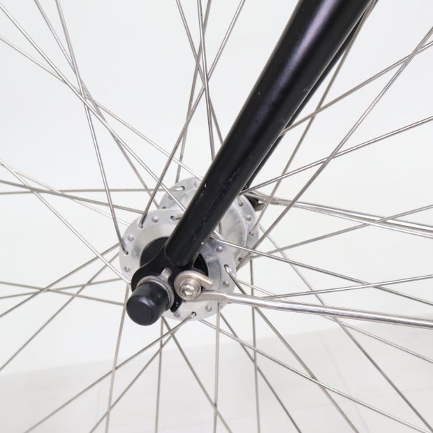 一部に傷や錆やスレがありますが、比較的状態の良い車体です。前カゴが後付けされています。