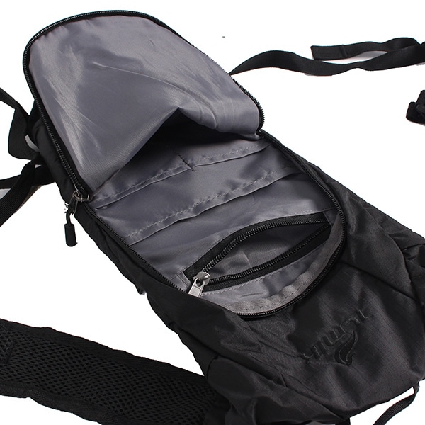 構造は2気室構造で、背中側はハイドレーション(水筒)用、外側は小物類。カタログ値は5Lですが、双方合わせてことでしょう。 ハイドレーション側には蓋はありません。底にはホースを通す穴があるので、ここには小物を入れない方がよいでしょう。 サイズは、2Lのペットボトルを突っ込んで余裕、しかも飛び出さない。1Lサイズのプラティパス2本を入れることも出来ました。 ホースは、ショルダーベルトの肩付近(両肩)、胸付近(両旨)に通すことが出来る構造になっています。 外側はファスナー付きで、容量は1Lサイズのプラティパス1本が入ります。更に内ポケットがファスナーなし、あり計2つあります。ファスナーありの方は深さ11cmで少々浅いです。ファスナーなしの方はスマホが入ります。出来でば双方にファスナーが欲しかった。 反射材が縫い込まれていますがグレー。黒にグレーなので地味な印象。いっそのことなしでもよかったような。 肝心の背負いやすさですが、非常に背負いやすい印象です。 全体として、概ね満足しています。