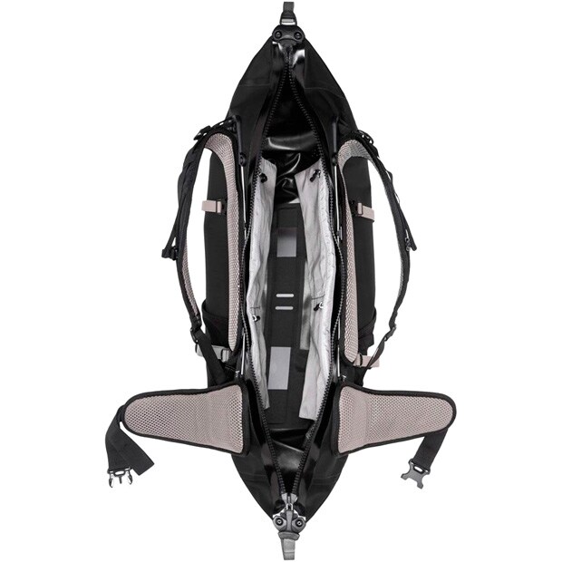 トラベルバッグとバックパックの機能を備えた防水バックパック。大きな開口部が背面の内側にくる斬新なデザインで、パッキングや荷物の出し入れがとにかく簡単で快適。