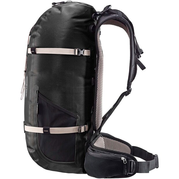 通気性が良く長さを3段階に調整できるショルダーストラップと、収納ポケット付ウエストベルトは高いフィット感と快適な背負い心地を実現。