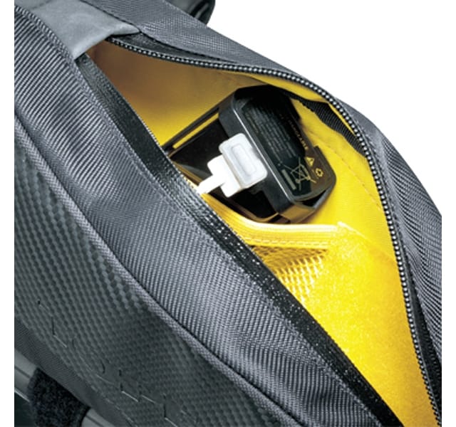 ステムとトップチューブに簡単に取り付けられ、ペダリング、ハンドリングの妨げになりにくいトップチューブバッグ。すぐ手が届くベストポジションなので貴重品入れに最適です。
