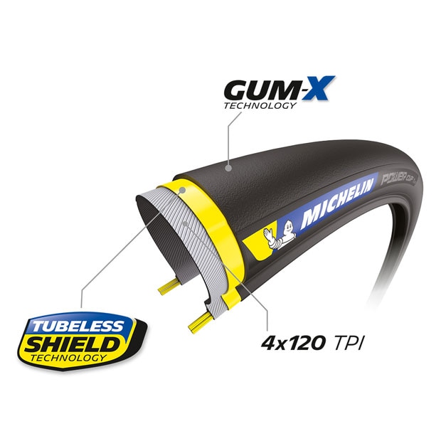 転がり抵抗を低減、グリップ力を向上したコンパウンドGUM-X Technologyを採用。POWER CUPは、転がり抵抗、軽量性、耐久性、ウエットグリップが高次元でバランスされたハイエンドのロードチューブレスレディタイヤです。