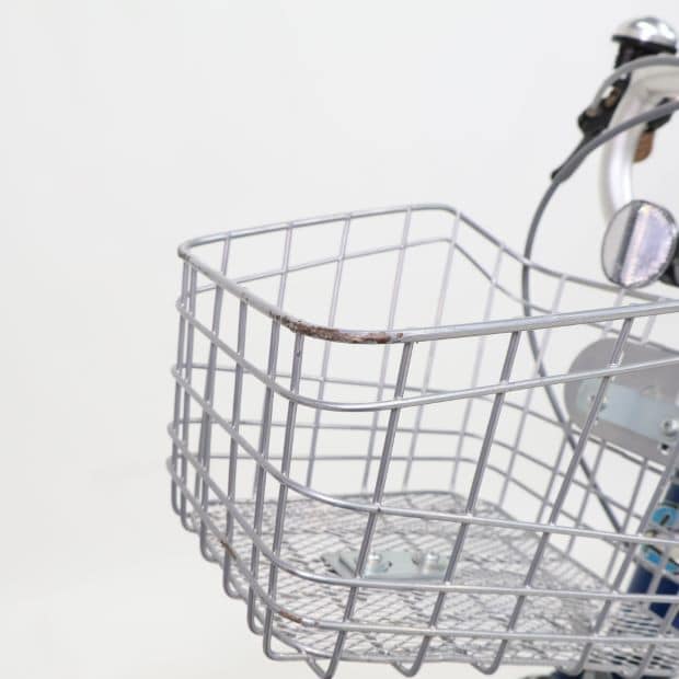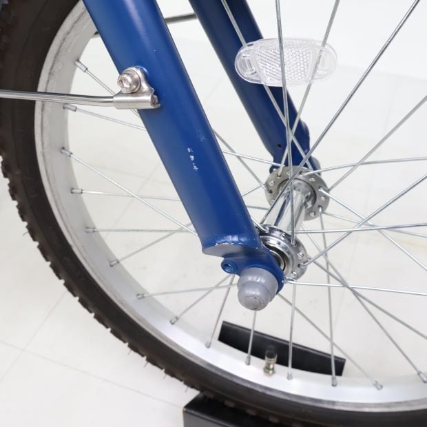 傷あり。補助輪がスタンドに交換されています。前カゴが後付けされています。