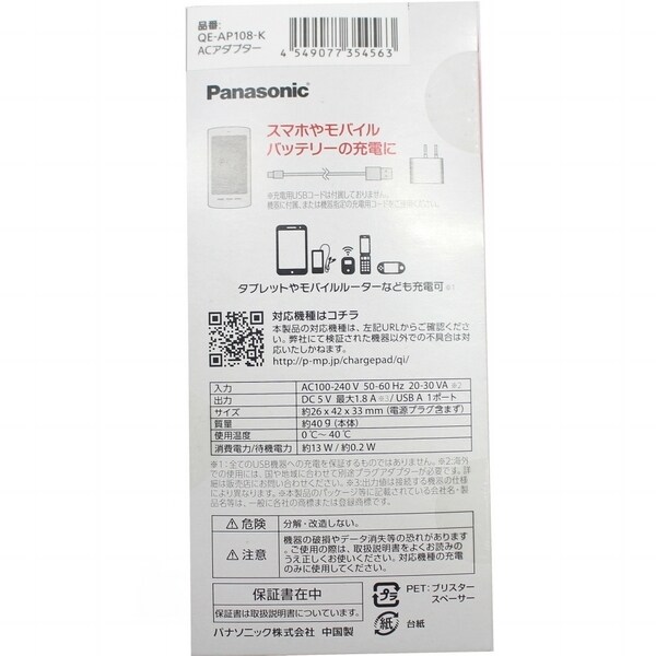 QE-AP108-K USB充電アダプター スマートフォン対応 急速充電 最大出力1.8A