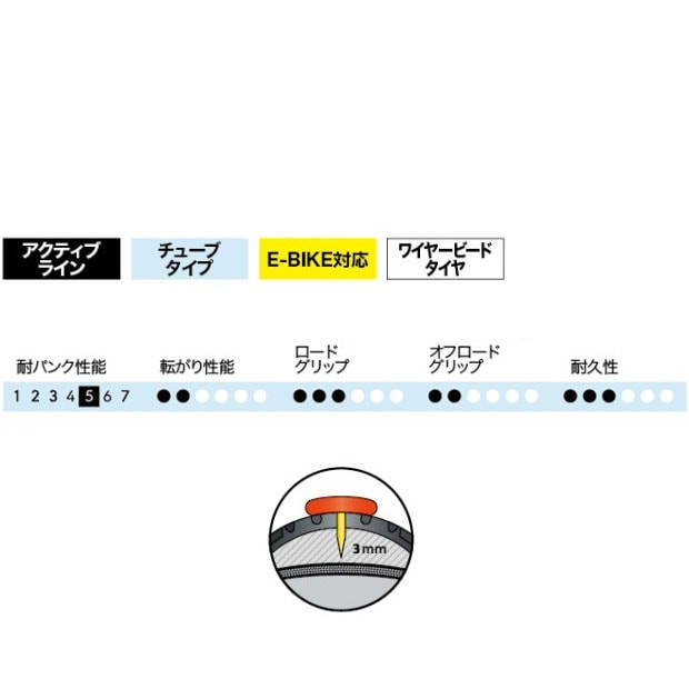 • ・670g/Active Line/PunctureGuard/Green/50EPI/E-BIKE READY 25/適合チューブ:7
