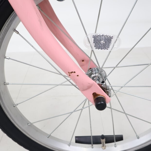 一部に傷や錆やスレがありますが、比較的状態の良い車体です。補助輪がスタンドに交換されています。