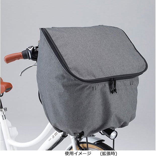 PAS標準装着の前バスケットに対応したカバーです。ひったくりや荷物の飛び出しを防ぎます。便利な容量アップ機能付き。後ろのボタンを外せば簡単に容量がアップ。