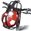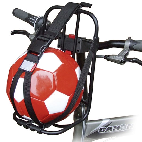 3点ベルトでカンタンホールド。バックパックもボールも自転車に積めるラックです。