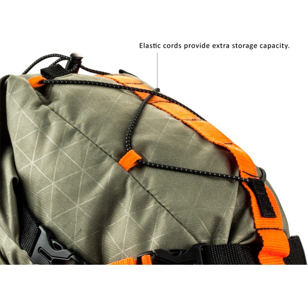 伸縮性のあるアッパーコードは、さらに取り付けの可能性を提供する2つの追加ストラップに加えて、追加の収納容量を提供します。