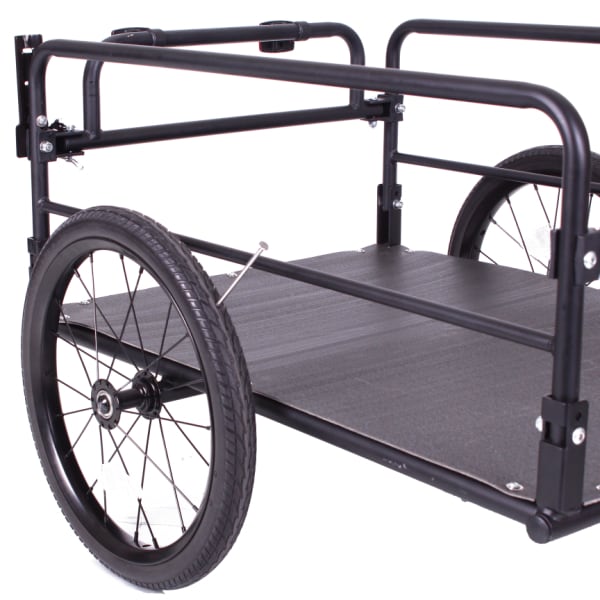 自転車に簡単に接続できるエマージェンシーバイク用のトレーラー。コンパクトに折りたためて収納性も高く、重たい荷物から大きな荷物まで多種多様な荷物を簡単に運べます。