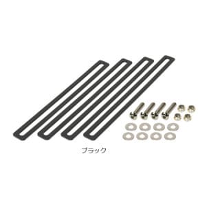 フロントバスケット、リアバスケットをキャリアーに固定するためのボトムステー。ボルト/ナットの位置が自由にスライドできるので、様々なキャリアーにバスケットを取り付けられます。